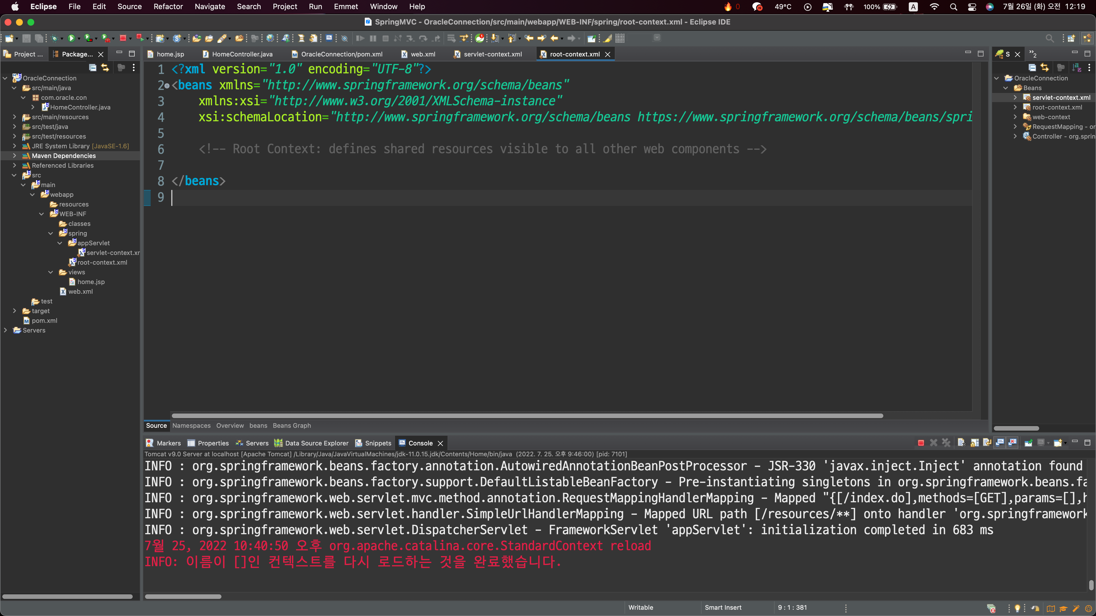 web.xml에서 context-param에 작성된 root-context.xml(스프링 환경설정) 파일로 이동합니다.