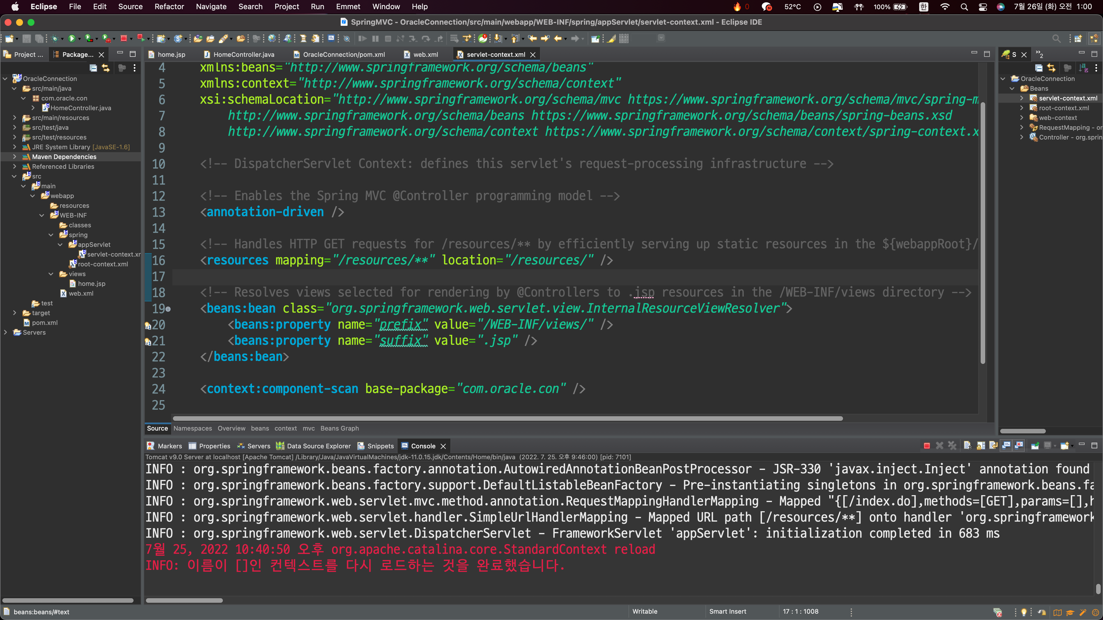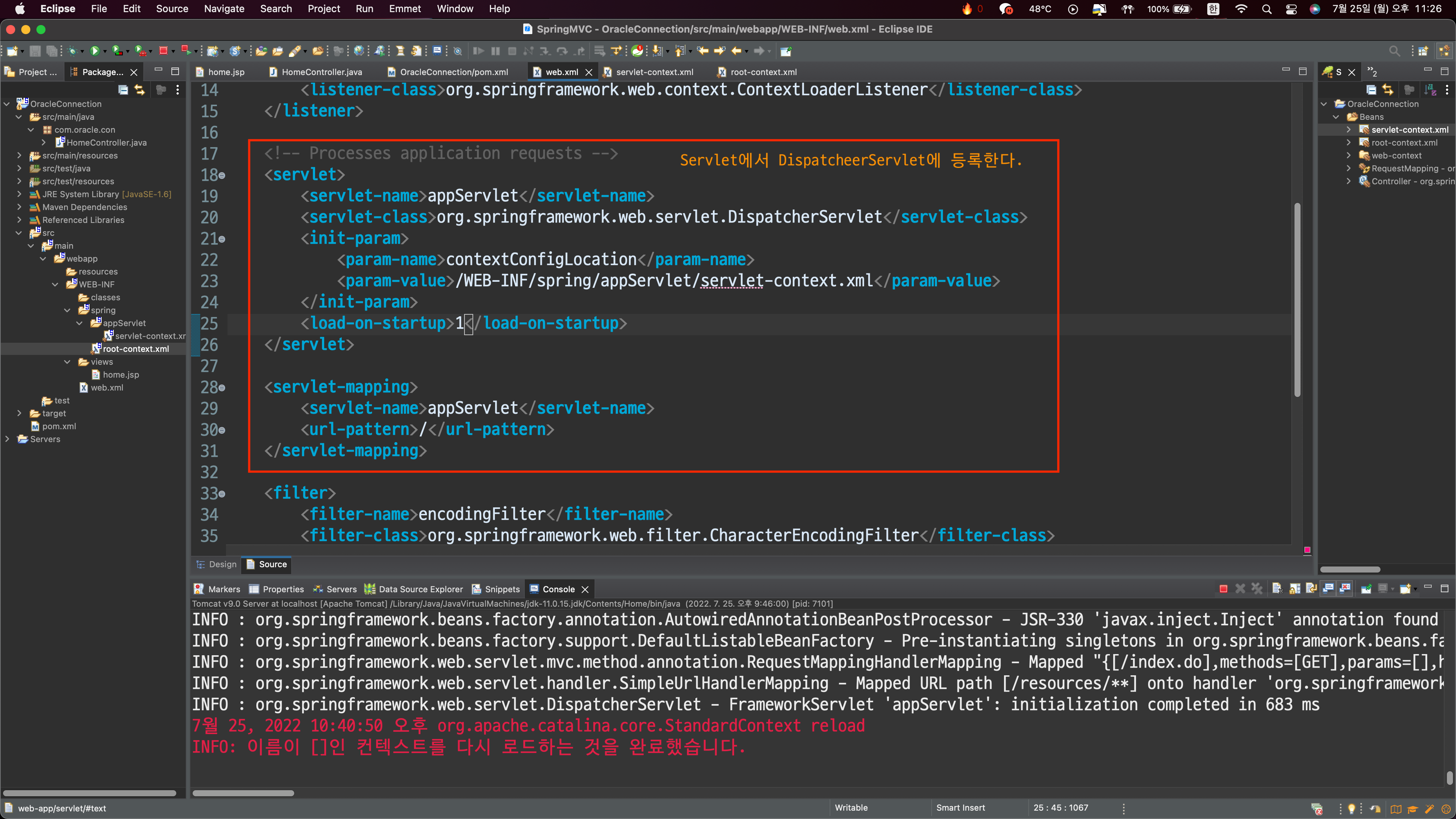 아까 web.xml에서 작성한<servlet> 관련된 Bean들이 모인 공간입니다. 위에서부터 차근차근 살펴보죠.