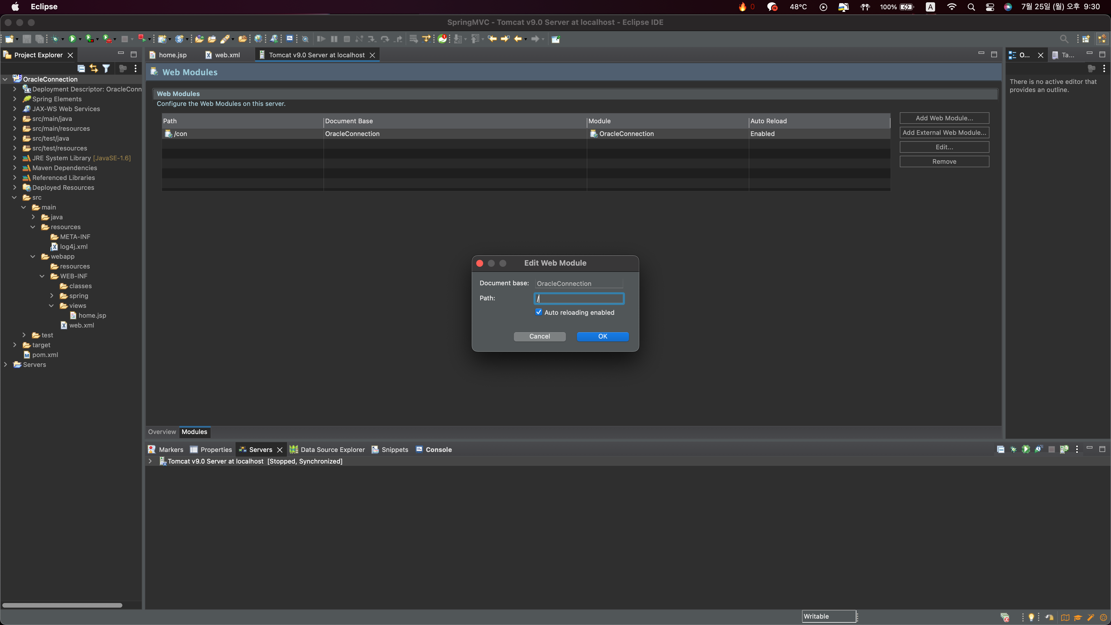 서버 더블클릭 -> 아래 Modules클릭 -> Edit..버튼 클릭 -> 원하는 Path명 입력!